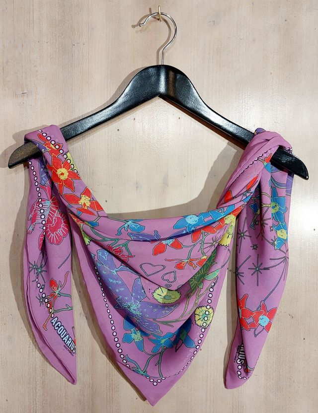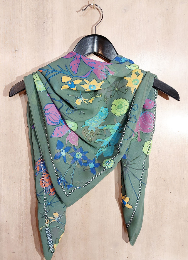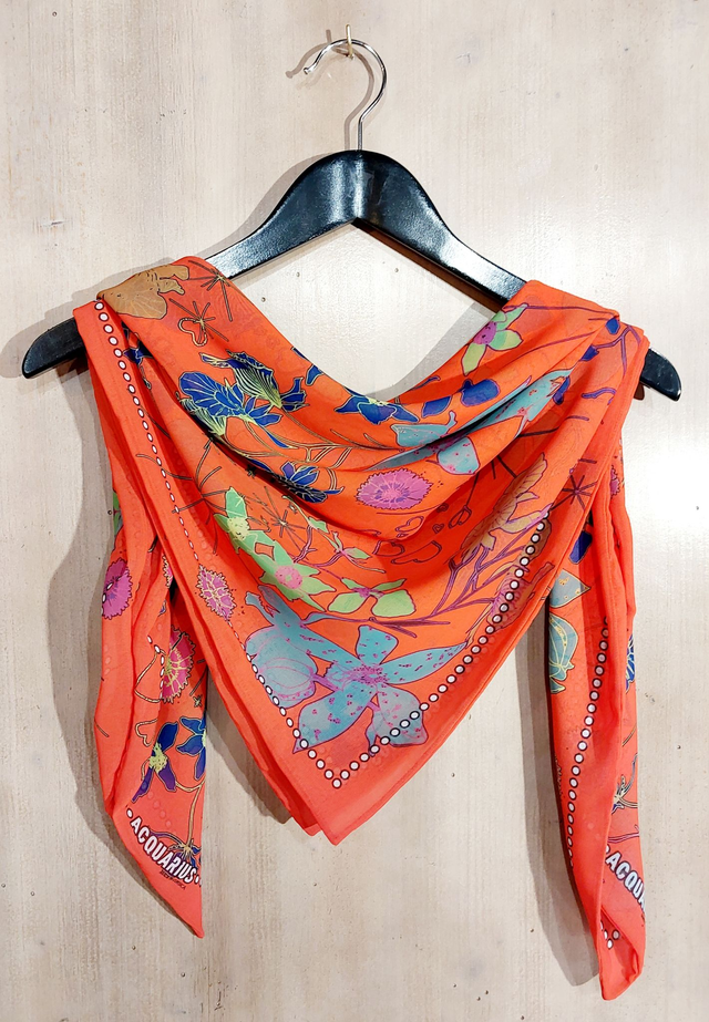 Les carrés Acquarius sont intégralement doublés et réversibles. La Georgette est un tissage doux, léger et fluide, agréable à porter hiver comme été.
